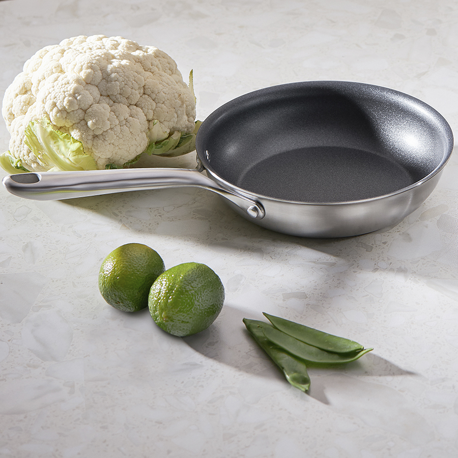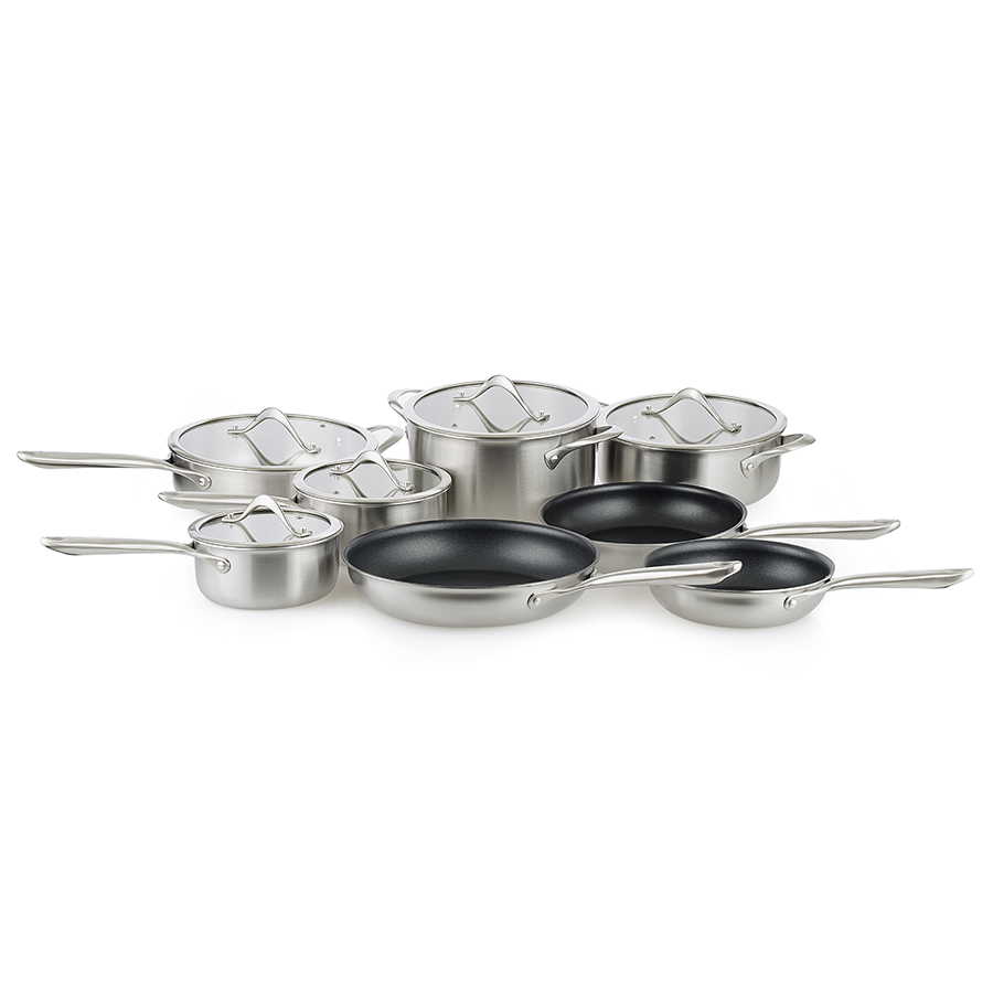 Посуда из нержавеющей стали 3Ply Etalon изготовлена по инновационной технологии TRI-PLY – ее стенки и дно имеют два слоя стали, между которыми предусмотрен слой алюминия. Эта особенность обеспечивает изделиям превосходную теплопроводность, практичность и долговечность. Коллекция идеально подходит для любых типов плит и впечатляет трендовым дизайном – сочетание современных форм и матовой поверхности делает ее настоящим украшением любой кухни.