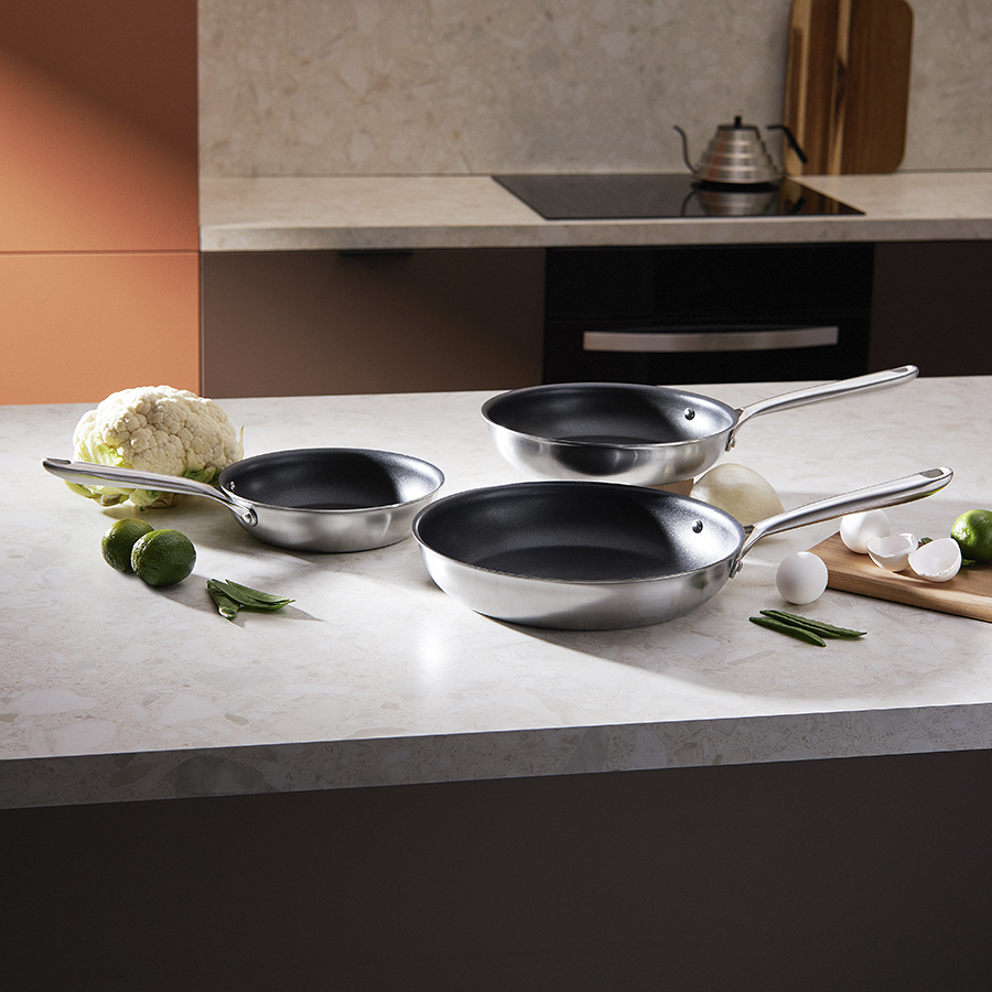 - Благодаря матовой поверхности посуда 3Ply Etalon выглядит невероятно стильно, что делает ее украшением любой современной кухни.